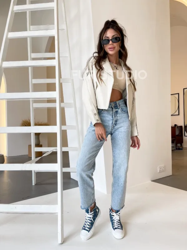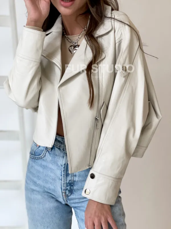 Белая короткая кожаная куртка 100212