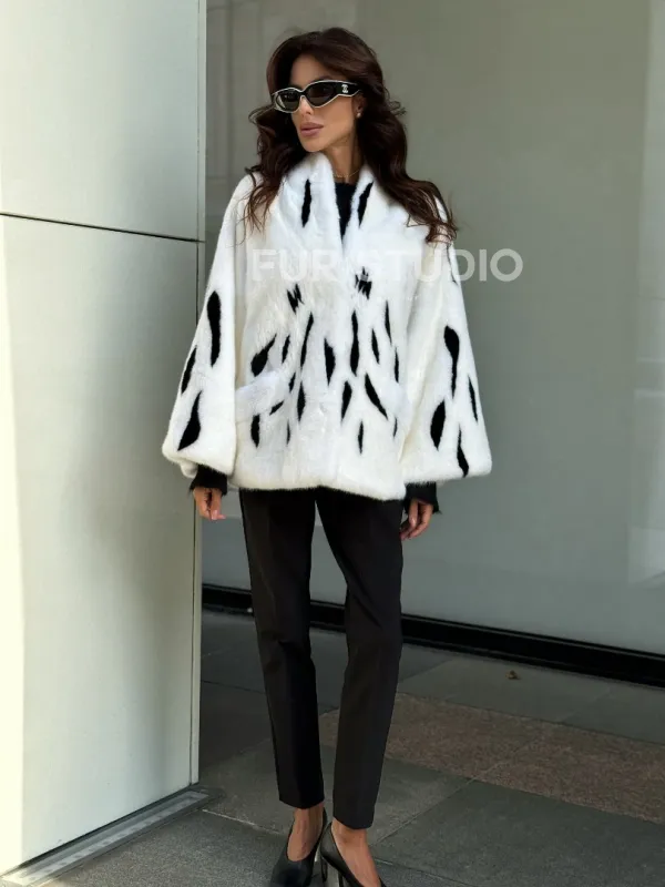 Белый норковый полушубок с рисунком доступна для покупки в нашем шоуруме Furs Studio в . У нас так же есть доставка во все города России. Добавьте немного роскоши в свой гардероб с этой шубой, которая будет служить вам многие годы.