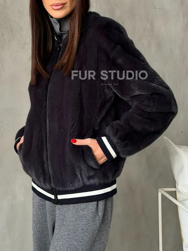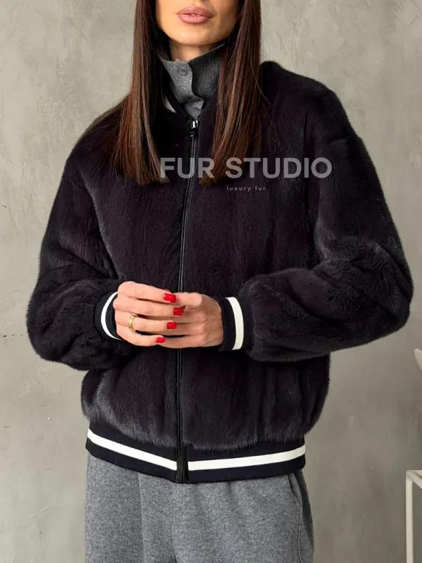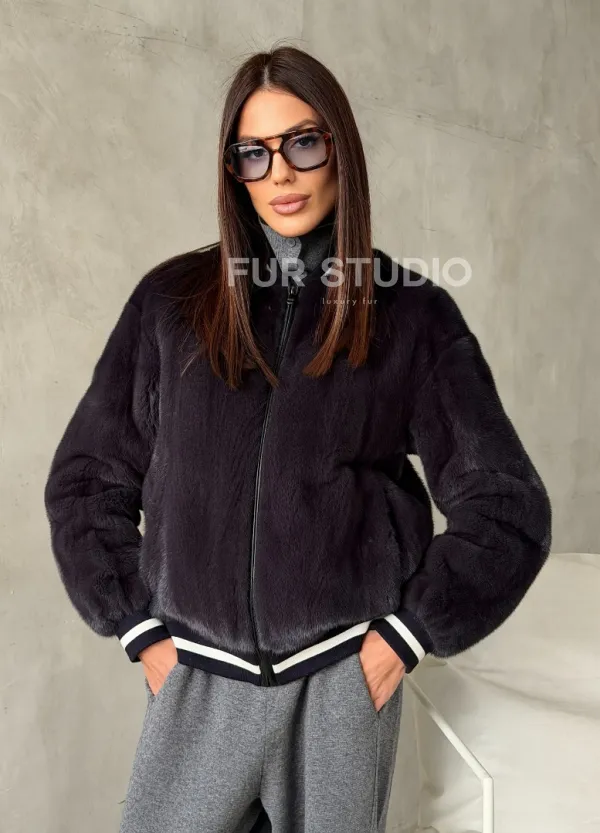 Бомбер из меха норки в цвете графит 100270
