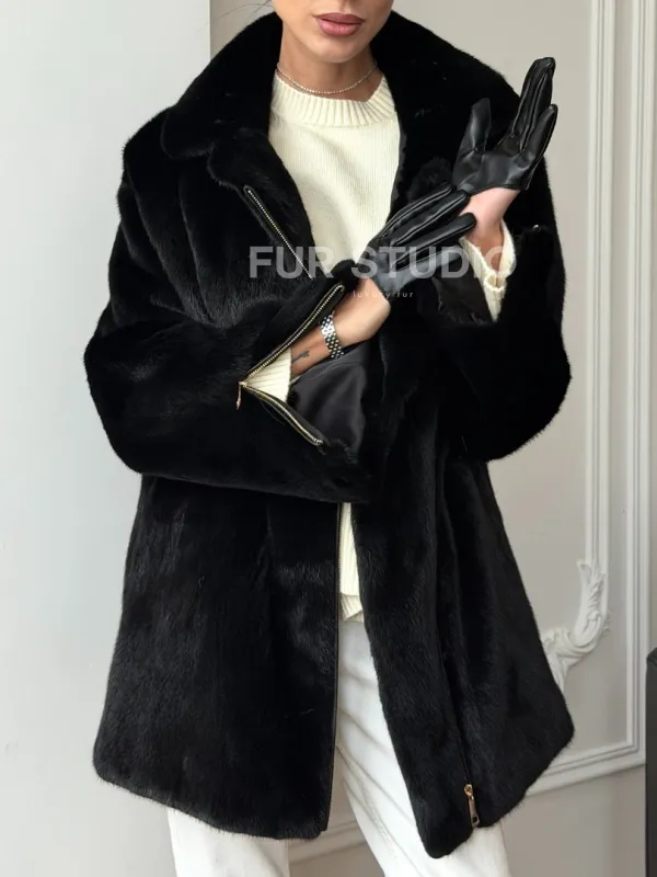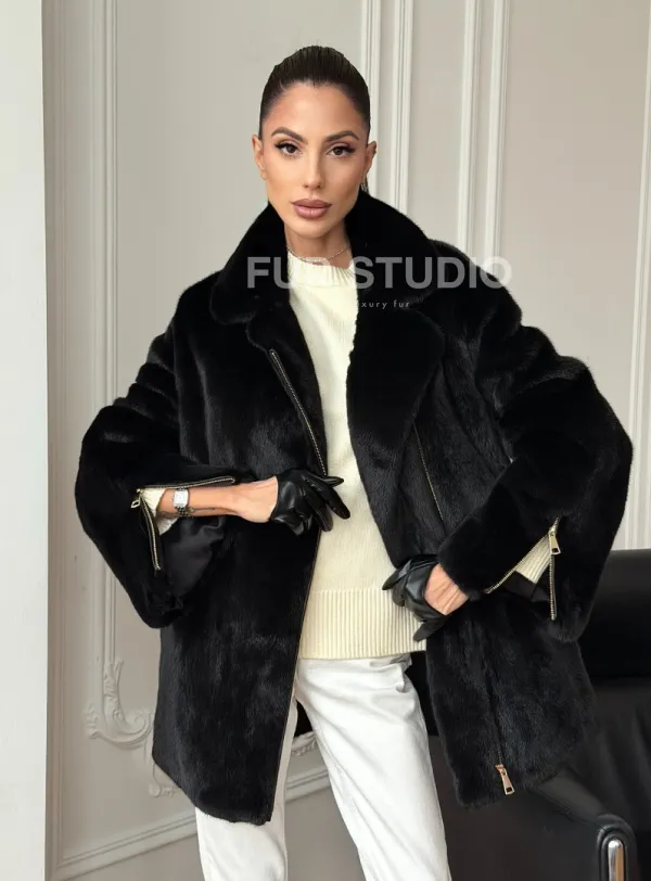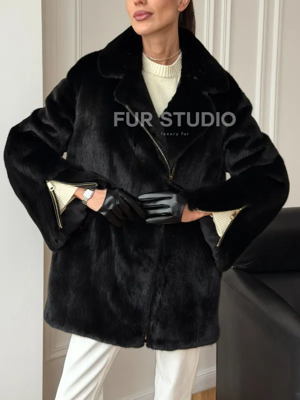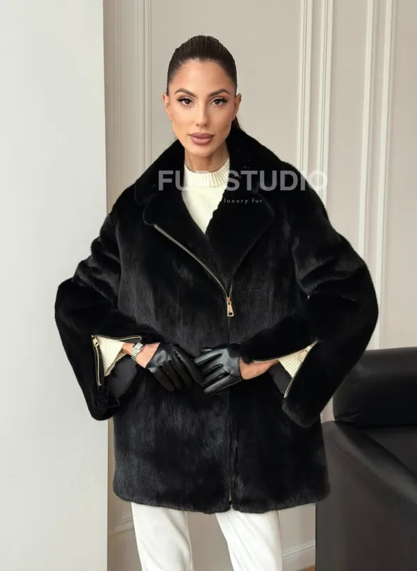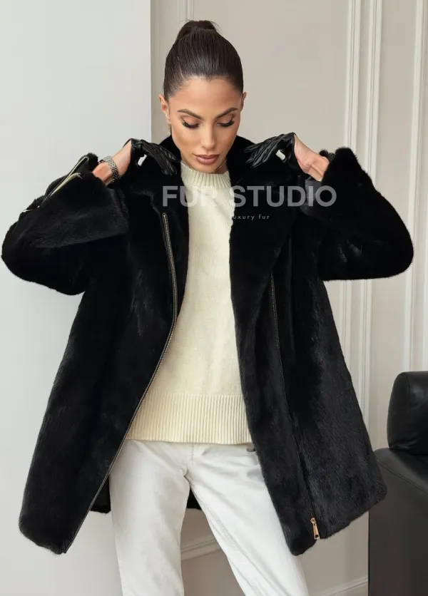 Черная норковая косуха 102706
