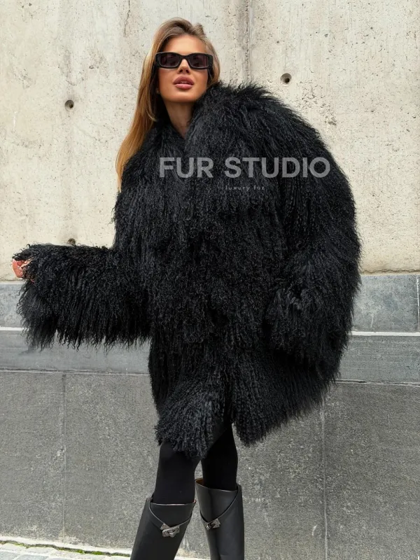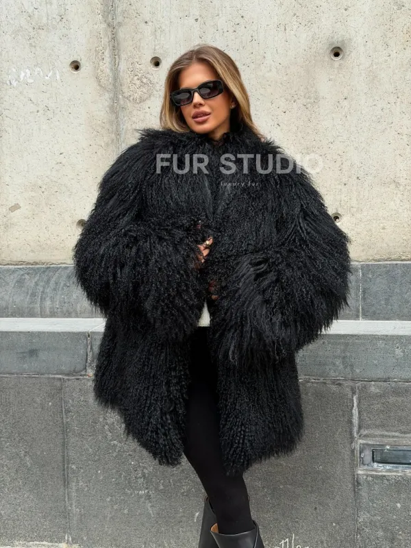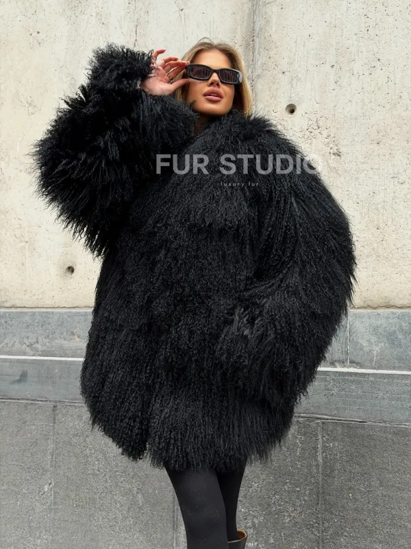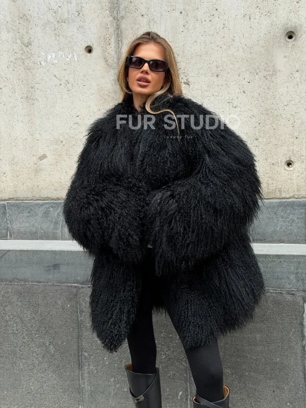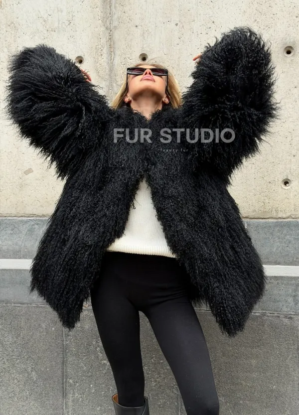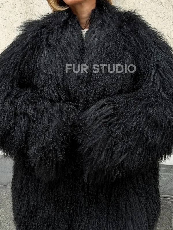 Черная шуба из ламы V-образный вырез доступна для покупки в нашем шоуруме Furs Studio в . У нас так же есть доставка во все города России. Добавьте немного роскоши в свой гардероб с этой шубой, которая будет служить вам многие годы.