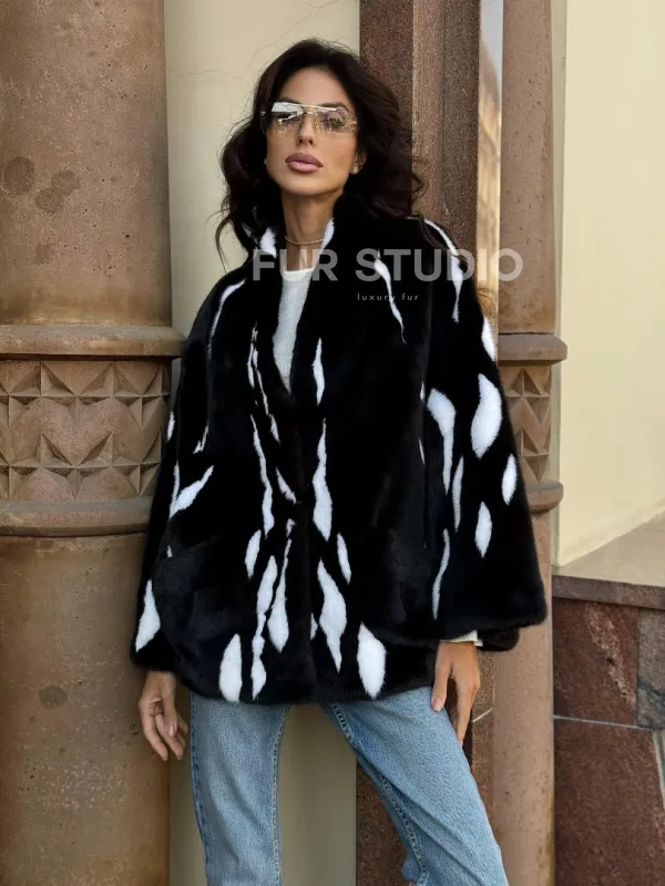 Черный норковый полушубок с рисунком доступна для покупки в нашем шоуруме Furs Studio в . У нас так же есть доставка во все города России. Добавьте немного роскоши в свой гардероб с этой шубой, которая будет служить вам многие годы.