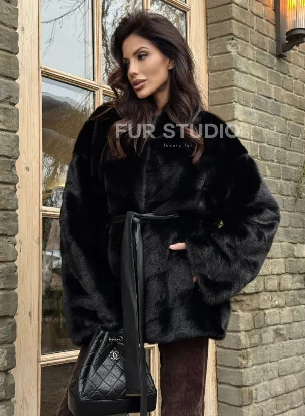 Черный норковый полушубок с воротником V-образным доступна для покупки в нашем шоуруме Furs Studio в . У нас так же есть доставка во все города России. Добавьте немного роскоши в свой гардероб с этой шубой, которая будет служить вам многие годы.