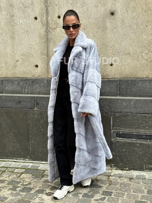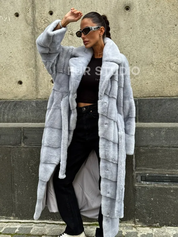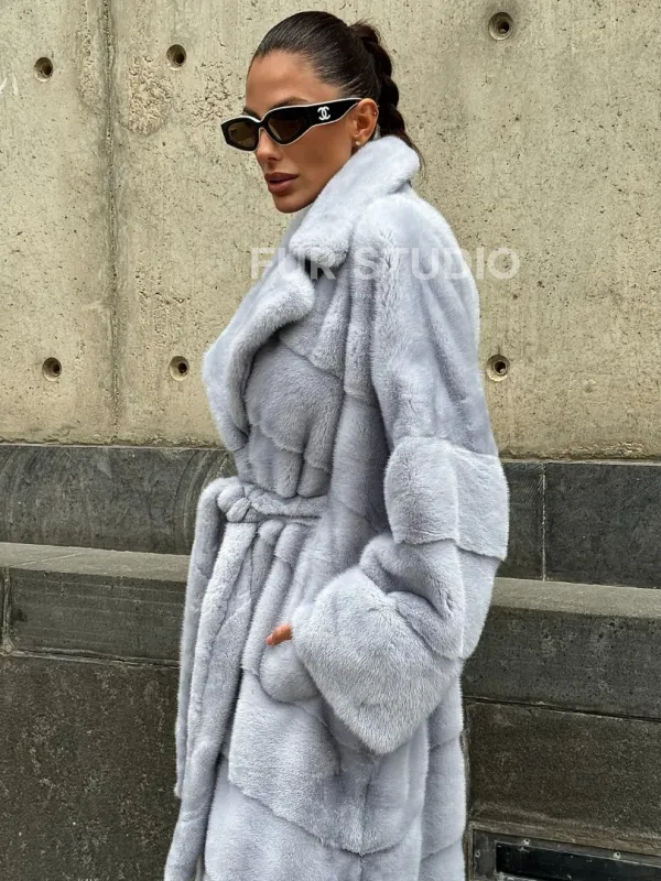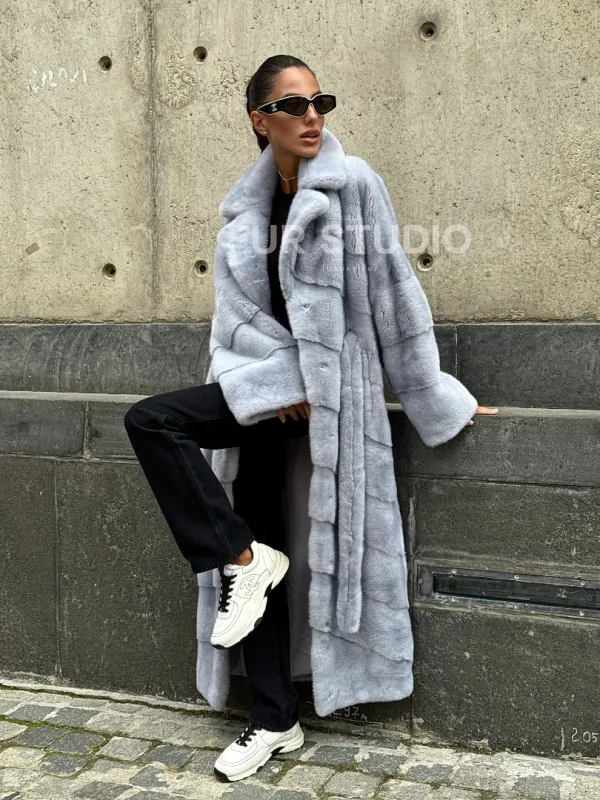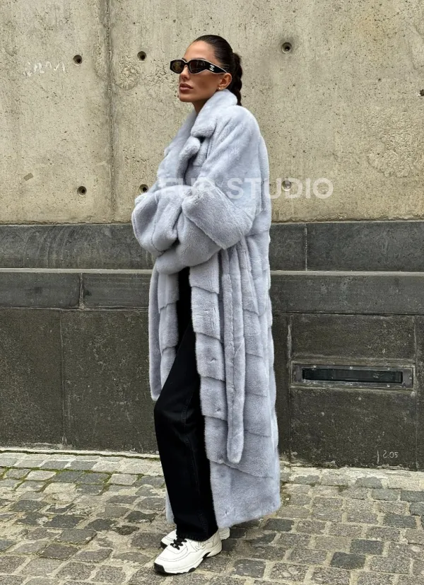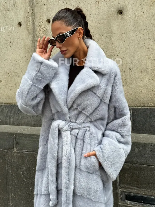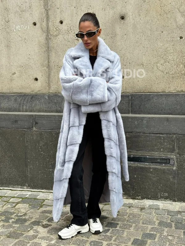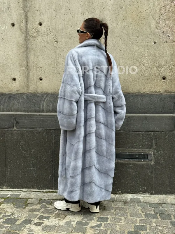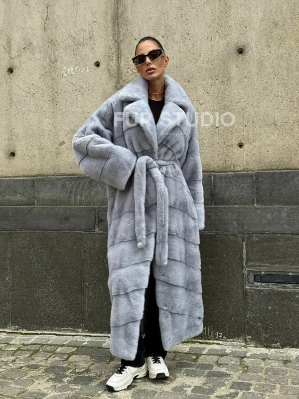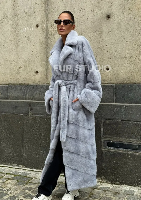 Шуба-пончо из меха норки с капюшоном из рыси – выбор утонченных дам с изысканным стилем. В модели вы будете выглядеть роскошно и женственно. Необычный крой подчеркивает достоинства фигуры. Оригинальный пояс очертит талию и визуально создает фигуру типа «песочные часы». Оптимальная длина удобна в носке и не сковывает движения.
