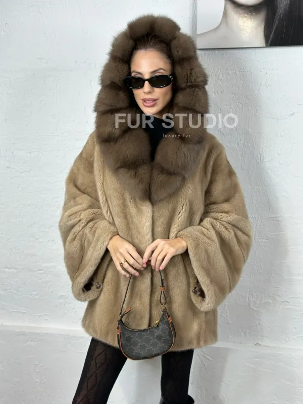 Норка автоледи с капюшоном куница - цвет пастель 100715