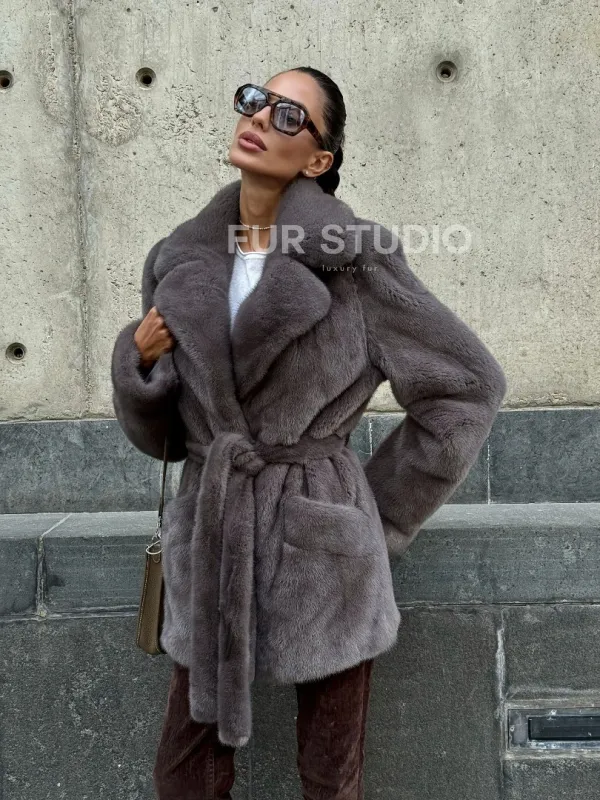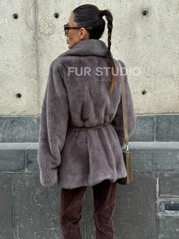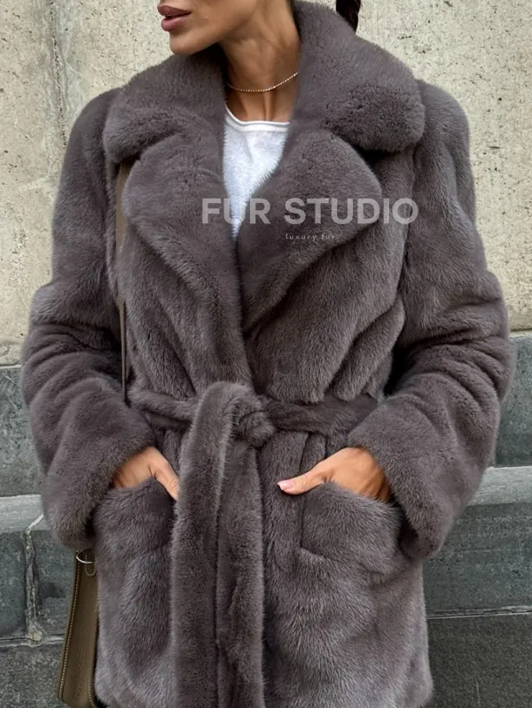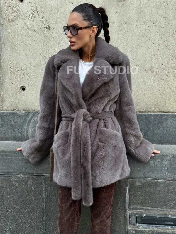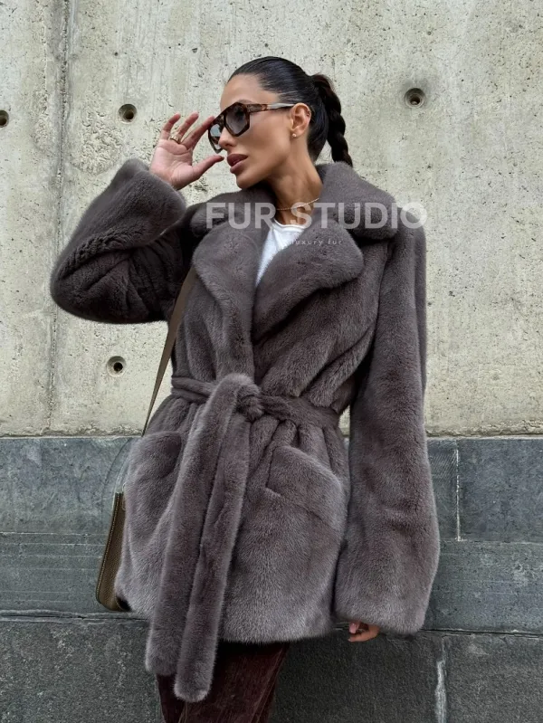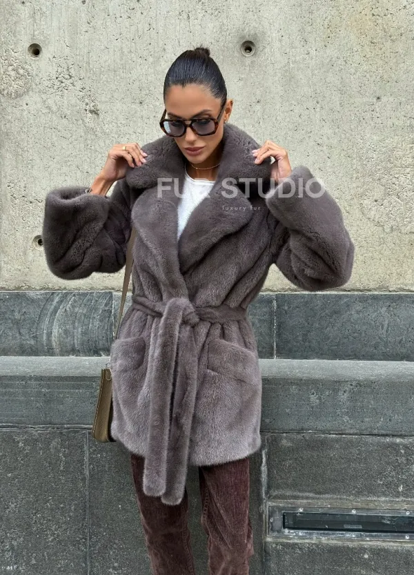 Длинные рукава подчеркнут нежные кисти, а удобные карманы не допустят, чтобы они замерзли. Модель подойдет под базовый гардероб, сочетается с вечерним нарядом. Неординарная сумочка дополнит образ, и вы будете выглядеть, как с обложки журнала. Купить короткую шубу из меха норки с воротником из меха куницы цвет лаванда могут только девушки, которые знают, что хотят от жизни.