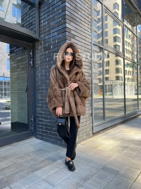 Изделие комфортно при носке. Свободный крой не сковывает движения. Широкий капюшон защитит от непогоды владелицу. Статусная сумочка добавит образу лаконичности. Оригинальный оттенок выгодно подчеркнет цвет волос и кожи. Купить норковое пончо с капюшоном в цвете пастель – выбор женщин, которые любят выглядеть дорого и роскошно.