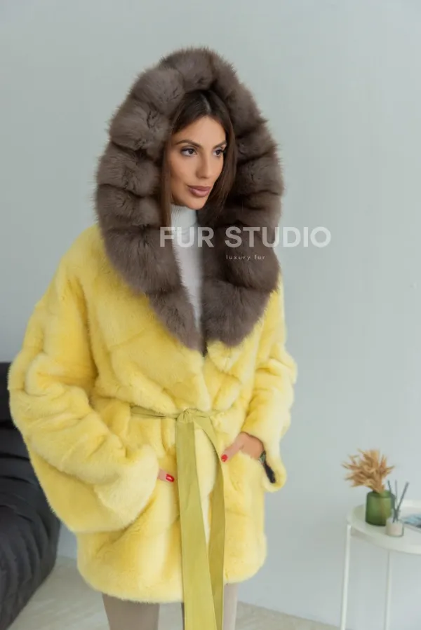 Норковое пончо - шуба с капюшоном из меха куницы - желтого цвета доступна для покупки в нашем шоуруме Furs Studio в . У нас так же есть доставка во все города России. Добавьте немного роскоши в свой гардероб с этой шубой, которая будет служить вам многие годы.