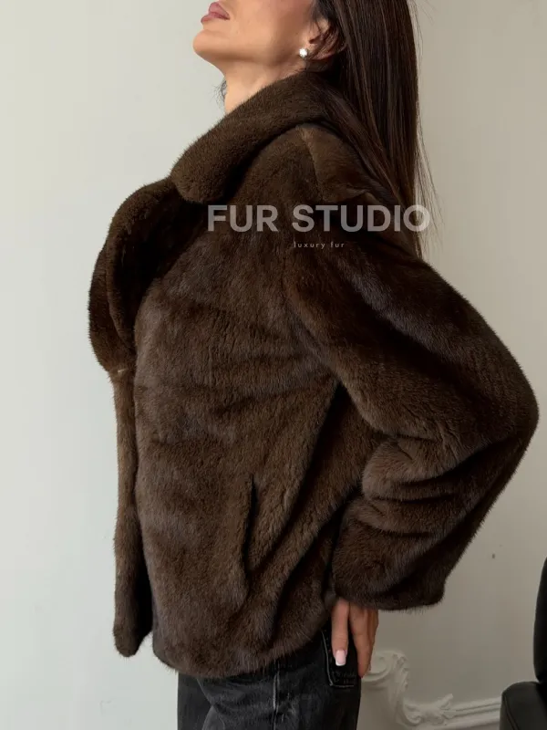 Мех данной шубы аукционная норка, цвет коричневый. Предлагается в размерах от 42 до 48. Длина модели 55-60 см, что выгодно подчеркивает фигуру девушек. Эта модель идеально подойдет для девушек и женщин, предпочитающих роскошные натуральные меха.