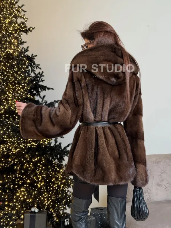 Норковый жакет с капюшоном, роспуск в цвете орех доступна для покупки в нашем шоуруме Furs Studio в . У нас так же есть доставка во все города России. Добавьте немного роскоши в свой гардероб с этой шубой, которая будет служить вам многие годы.