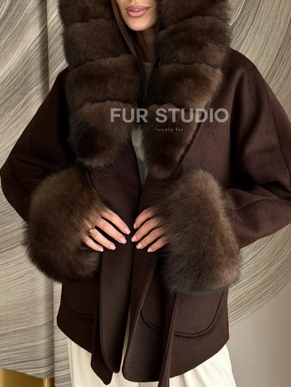 Пальто с мехом песца под соболь 102907