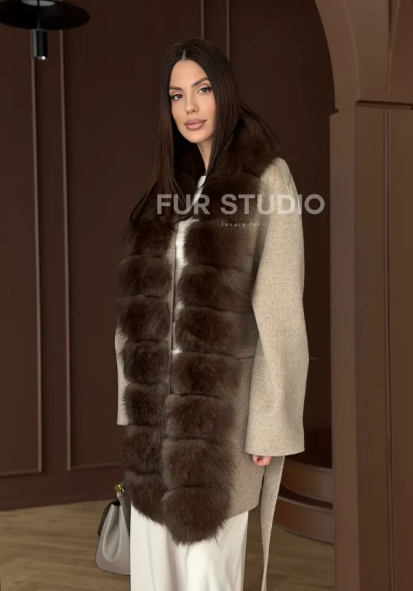 Пальто с отделкой из меха песца 102908