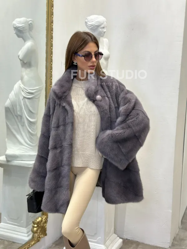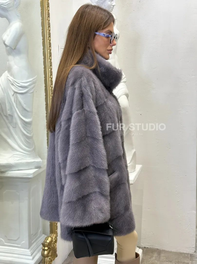 Норковая шуба стойка воротник, цвет фиолетовый – необычная модель для истинных модниц. Изделия из норки – всегда указывают на статус и вкус владелицы. Модель подчеркивает изысканность и безукоризненный стиль хозяйки. Воротник стойка акцентирует внимание на изяществе шеи. Оптимальная длина удобна при носке. Прямой силуэт подчеркнет достоинства фигура.