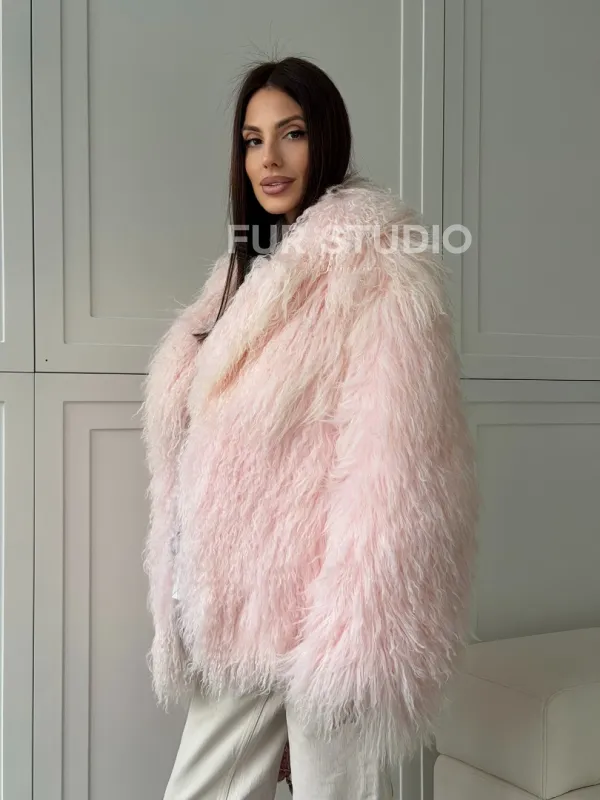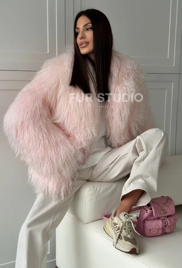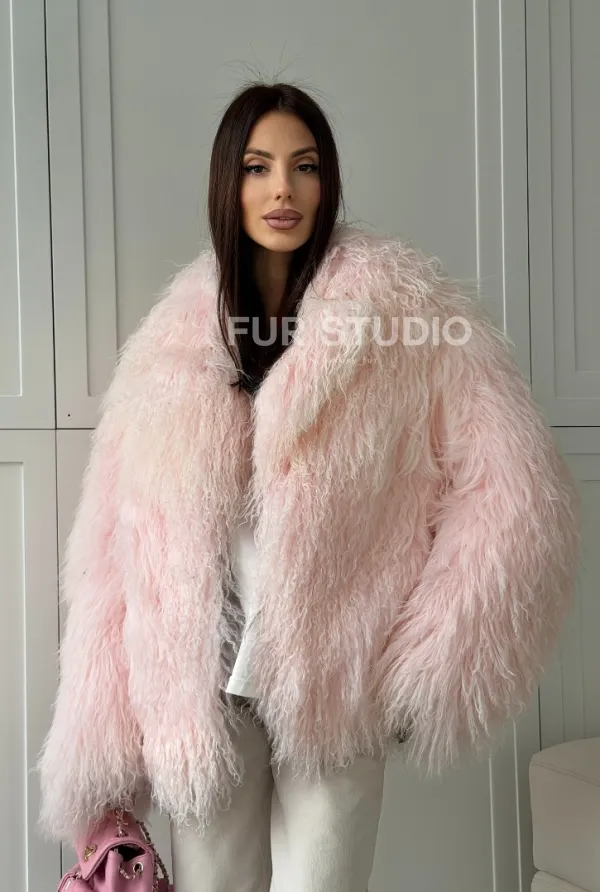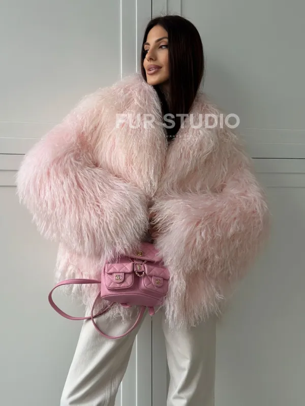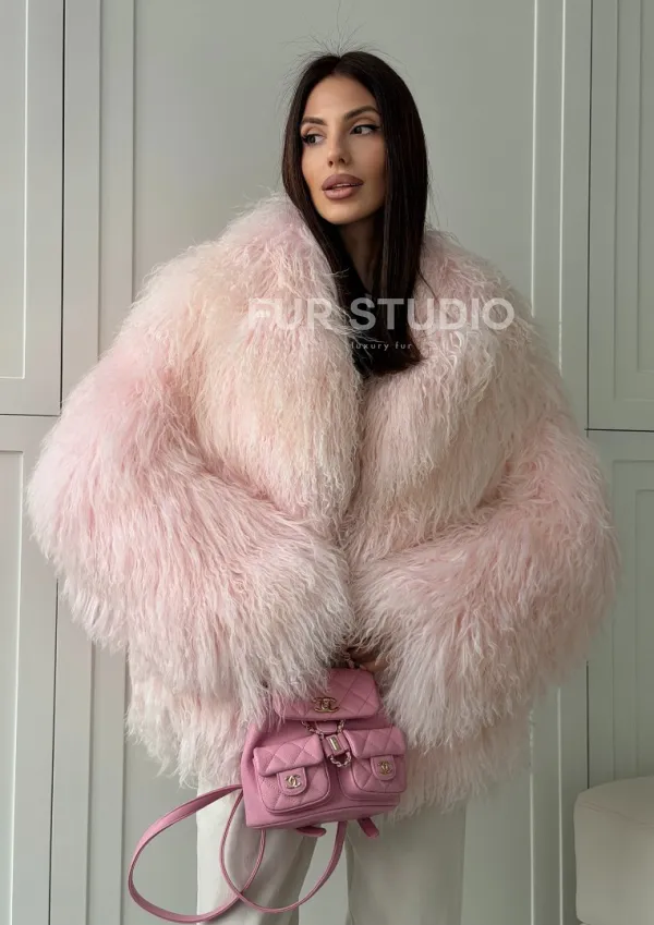 Шуба из меха ламы - цвет розовый 102813