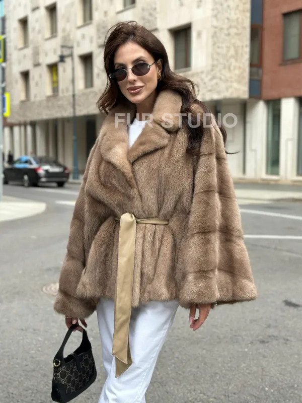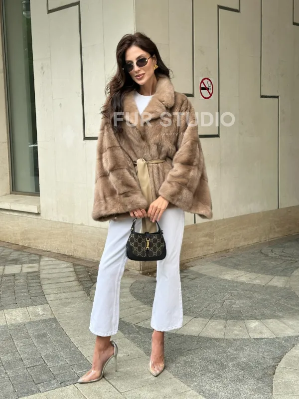 Шуба автоледи из норки цвет бежевый 100916