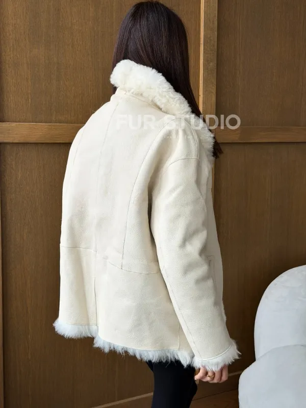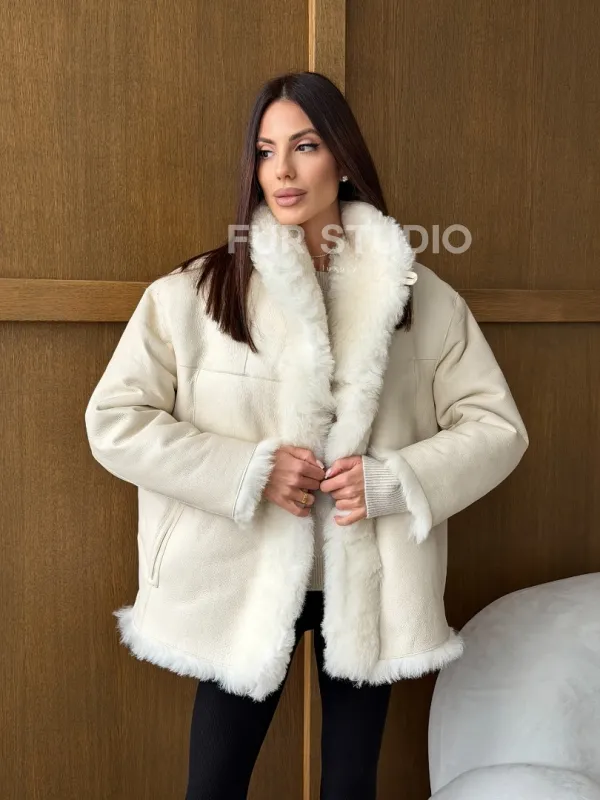 Светлая женская двухсторонняя дубленка 102752