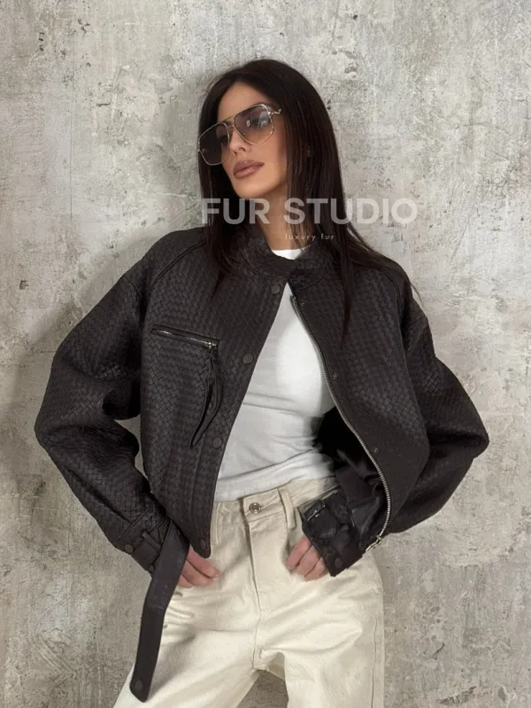 Женский бомбер из натуральной плетёной кожи 101701
