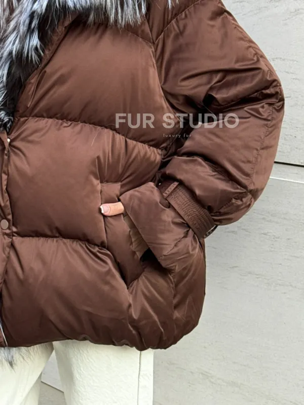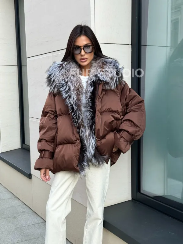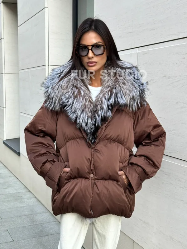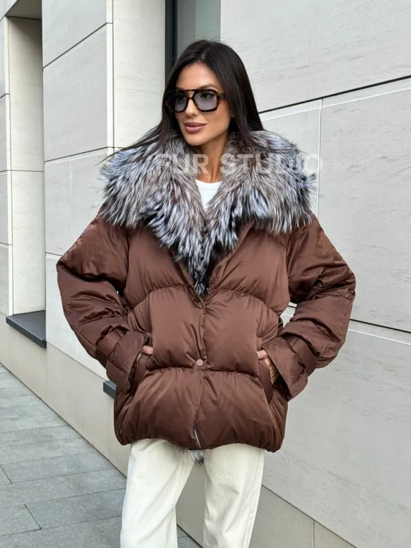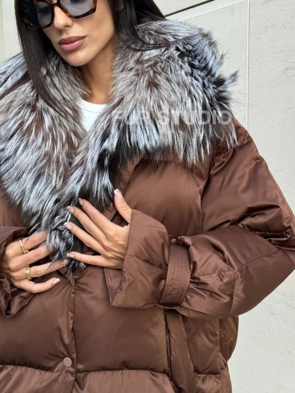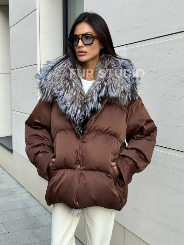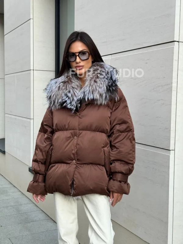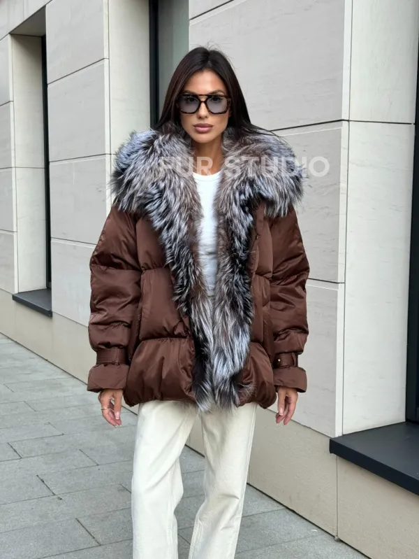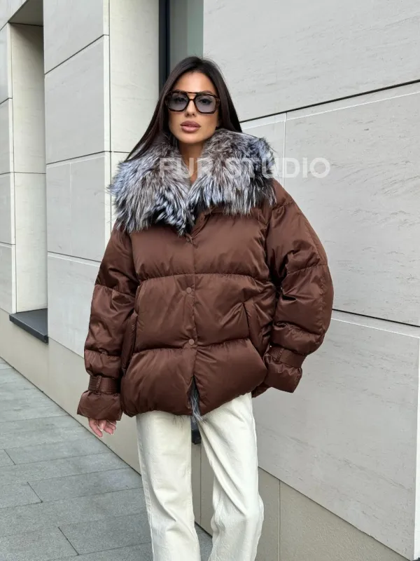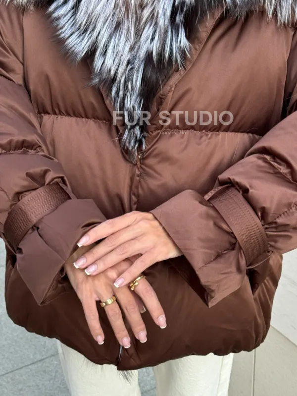 Женский зимний пуховик с мехом чернобурки 101132
