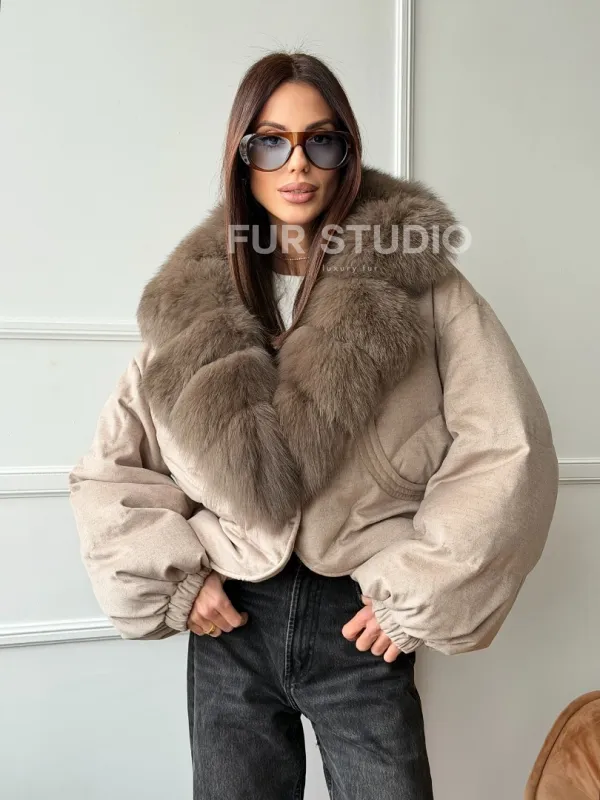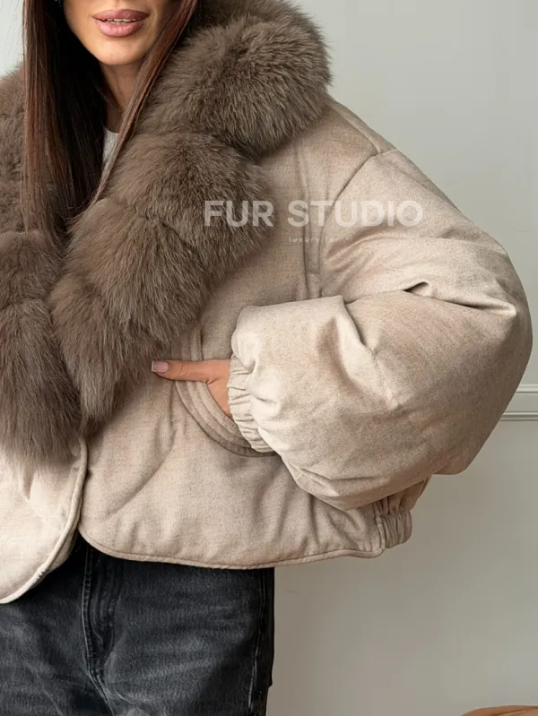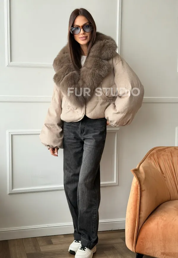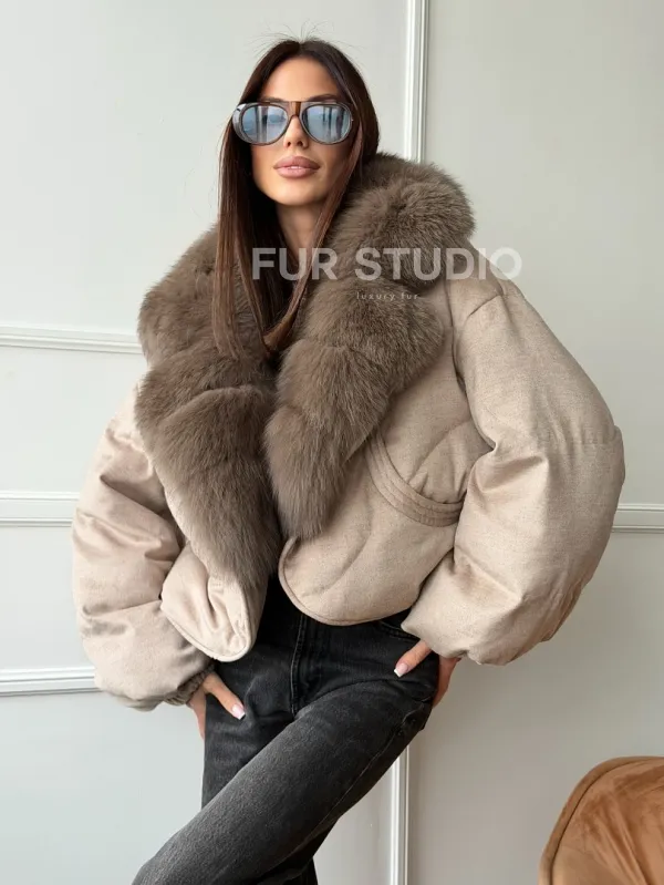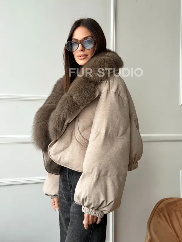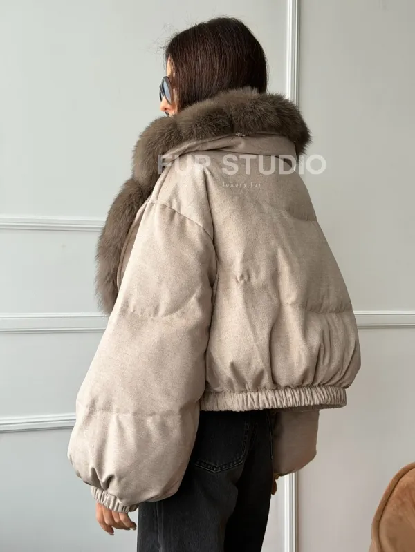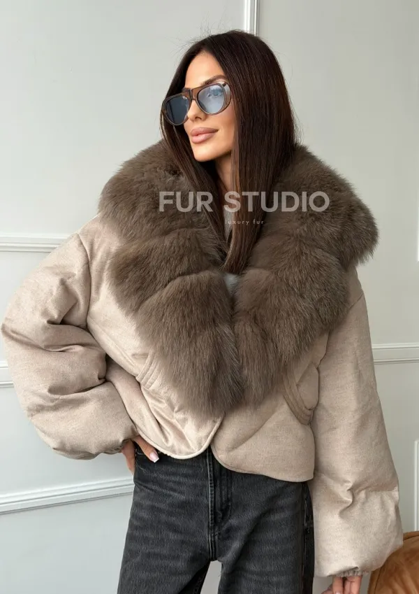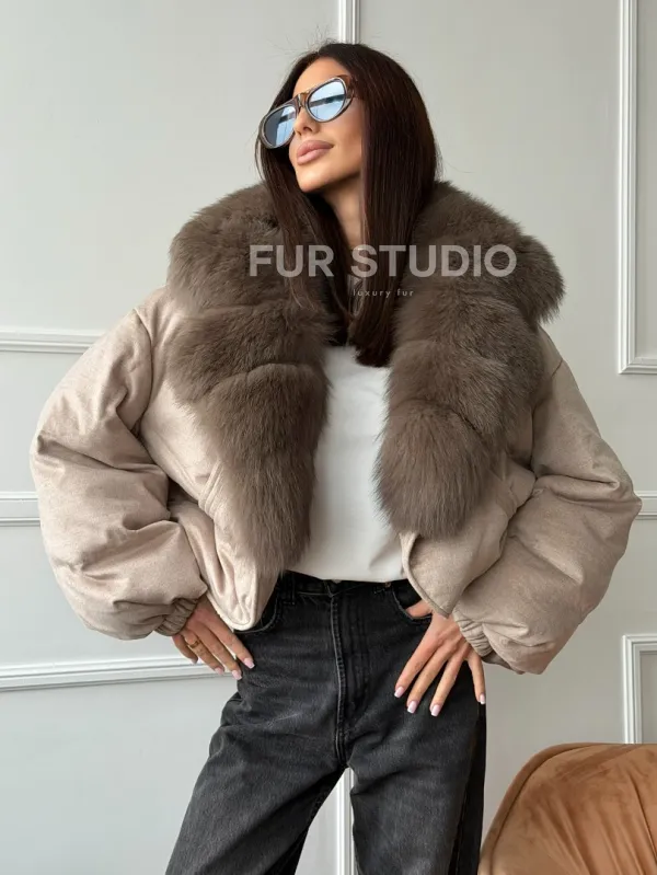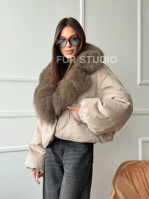 Зимний короткий пуховик с мехом - оверсайз 102748